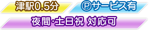 当事務所は、津駅から徒歩0.5分という便利な場所にあり、相談にもお越しいただきやすい環境です。
